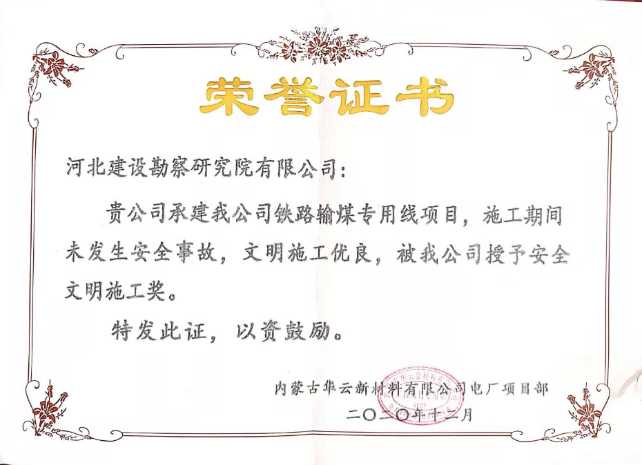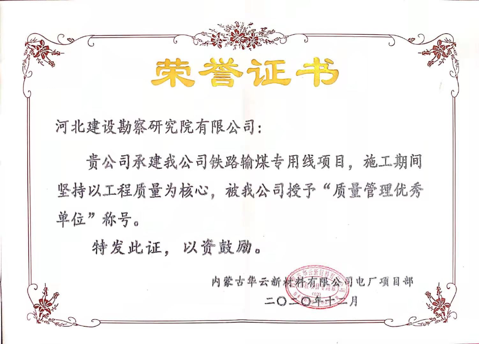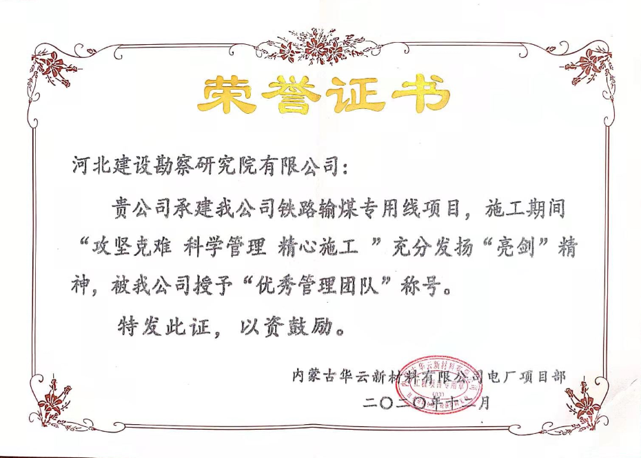日前,由我公司承建的內(nèi)蒙古華云新材料鐵路專(zhuān)用線(xiàn)輸煤系統(tǒng)工程翻車(chē)機(jī)深基坑支護(hù)工程已順利完工。業(yè)主內(nèi)蒙古華云新材料有限公司熱電廠(chǎng)向我公司發(fā)來(lái)表?yè)P(yáng)函,同時(shí)頒發(fā)了“優(yōu)秀管理團(tuán)隊(duì)”、“質(zhì)量管理優(yōu)秀單位”、“安全文明施工”榮譽(yù)稱(chēng)號(hào)。