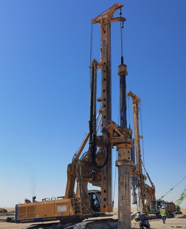 該項目位于迪拜,是穆罕默德·本·拉希德·阿勒馬克圖姆太陽能公園的第四區。受中建三局委托,我公司承擔本項目樁基施工,采用公司自有旋挖鉆機及錨桿鉆機進行干孔灌注樁施工工藝施工,共完成混凝土灌注樁9874根,灌注樁樁身完整性檢測3300根,水平側向載荷試驗36根,驗證荷載試驗7根。