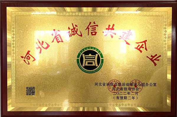 根據河北省信用辦、河北省信用協會等七部門印發的《關于開展“推進誠信建設共建信用河北”的活動方案》的通知及《關于2021年度河北省“守合同重信用”企業申報認定工作的通知》,我公司被評為“河北省誠信共建企業”和“河北省AAA級守合同重信用企業”。