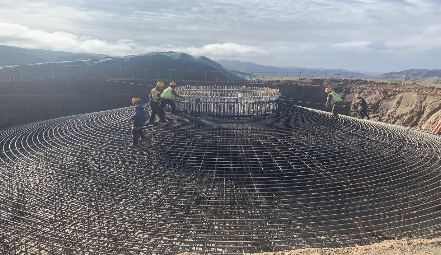 本項目采用了可更換基礎(chǔ)預應力錨栓組件,解決了傳統(tǒng)的埋入式基礎(chǔ)環(huán),預應力錨栓抗疲勞性能差,應力不均勻,不方便后期錨栓組件維修保養(yǎng)等問題。由于每個風機基礎(chǔ)混凝土用量較大,屬于大體積混凝土澆筑,為防止產(chǎn)生混凝土裂縫,我們嚴格控制混凝土澆筑過程中的溫度和混凝土養(yǎng)護過程中內(nèi)外部溫差。同時,預應力錨栓組件、錨栓的垂直度和錨板的水平度控制是直接影響風機塔筒穩(wěn)定性的關(guān)鍵因素,施工難度大。