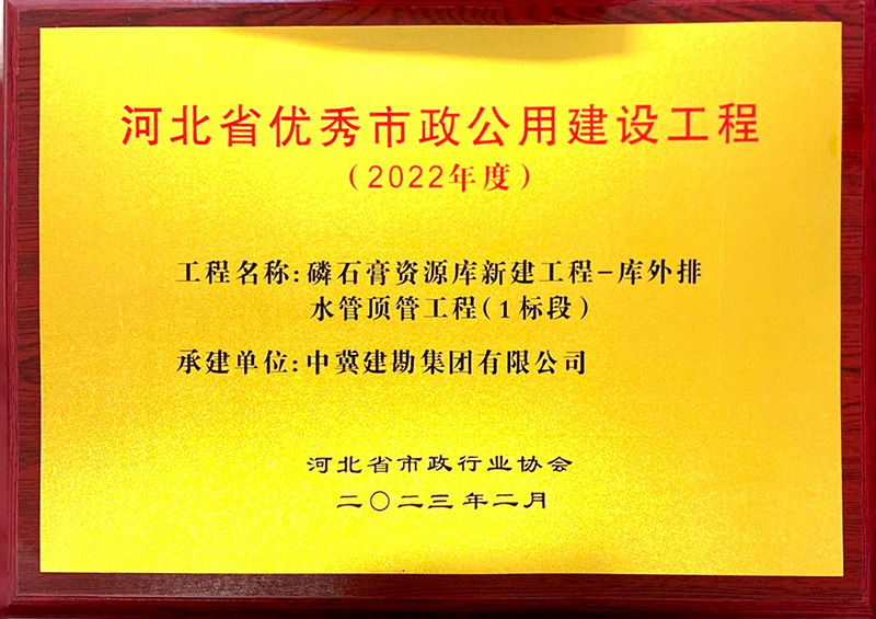 近日,河北省市政行業協會發布消息,經過審核申報材料、查驗施工現場、專家綜合評議,我公司市政工程項目“磷石膏資源庫新建工程——庫外水管頂管工程(1標段)”被評為河北省優秀市政公用建設工程,并為項目經理高立康同志頒發了榮譽證書。