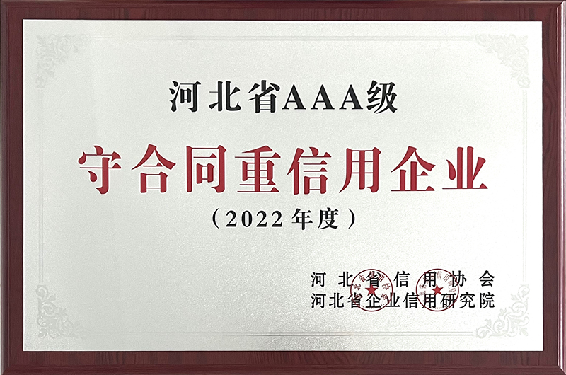 根據河北省信用辦、河北省信用協會等七部門印發的《關于開展“推進誠信建設共建信用河北”的活動方案》的通知,以及河北省信用協會、河北省企業信用研究院印發的《關于2022年度“河北省守合同重信用”企業申報認定工作的通知》,我公司被評為“河北省AAA級守合同重信用企業”。