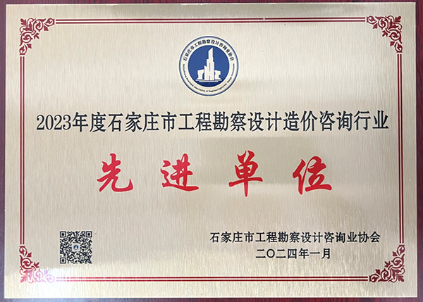 近日,石家莊市工程勘察設計咨詢業協會下發《關于表彰2023年度石家莊市工程勘察設計造價咨詢行業先進單位和先進個人的通知》(石設協字【2024】3號),我公司被授予“2023年度石家莊市工程勘察設計造價咨詢行業先進單位”稱號,韓立君同志、商衛東同志被授予“2023年度石家莊市工程勘察設計造價咨詢行業先進個人”稱號。