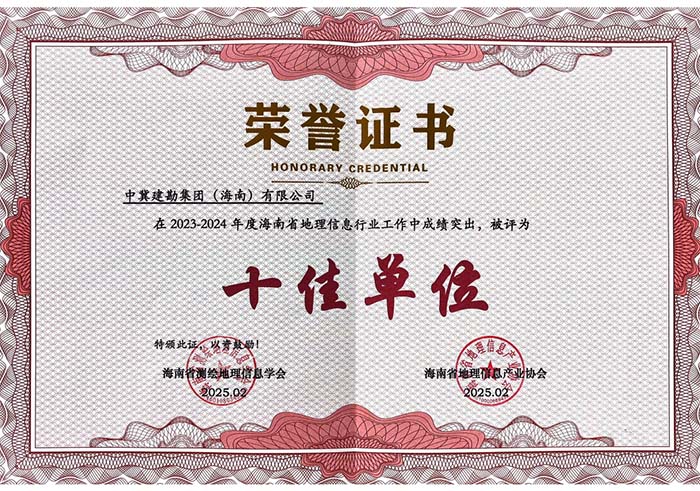 2月28日,由海南省測繪地理信息學會與海南省地理信息產業協會聯合主辦的第一屆海南省地理信息服務自貿港創新發展大會在??诼≈嘏e行。中冀建勘集團(海南)有限公司被授予“海南省地理信息行業十佳單位”榮譽稱號;十公司孫廣同志被授予“海南省地理信息行業先進個人”。