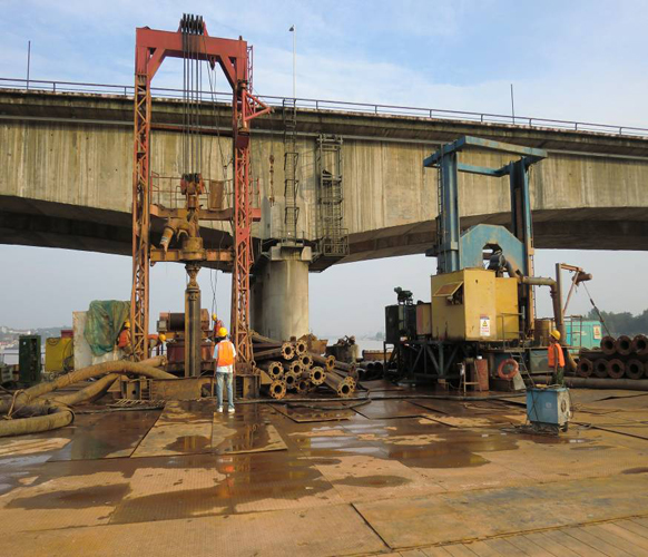 本工程是石長鐵路的復(fù)線工程,橋址位于湖南省常德市。施工時間為2010年5月31日至2010年12月31日。采用GF300、ZSD300型回轉(zhuǎn)鉆機、TR400C旋挖鉆機及YCJF-250型沖擊反循環(huán)鉆機成孔,泥漿護壁工藝。共完成Φ1.8m~Φ2.5m基樁38根,混凝土灌注量8000余方。